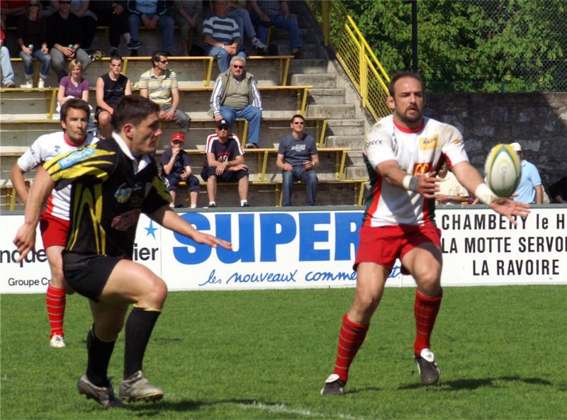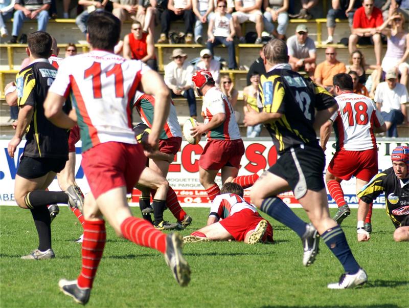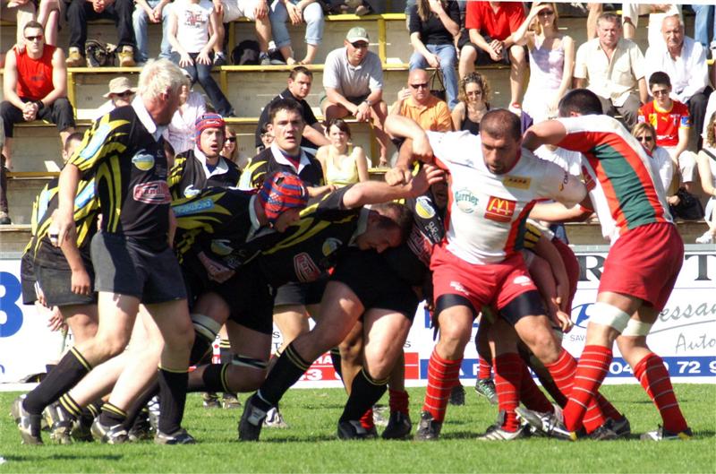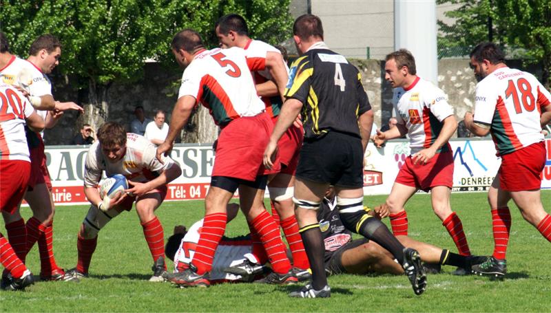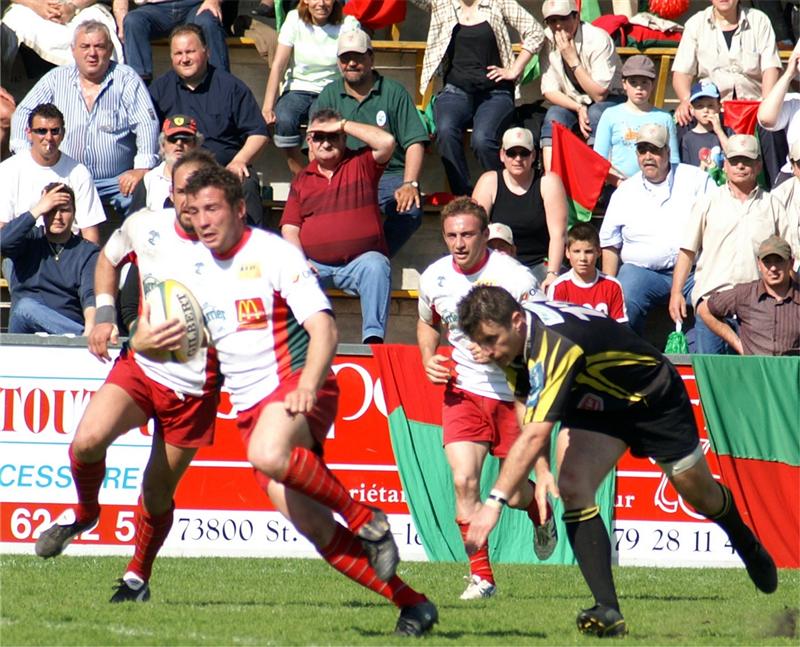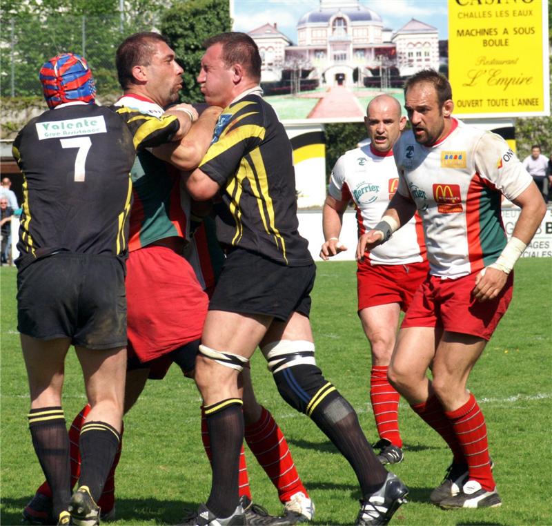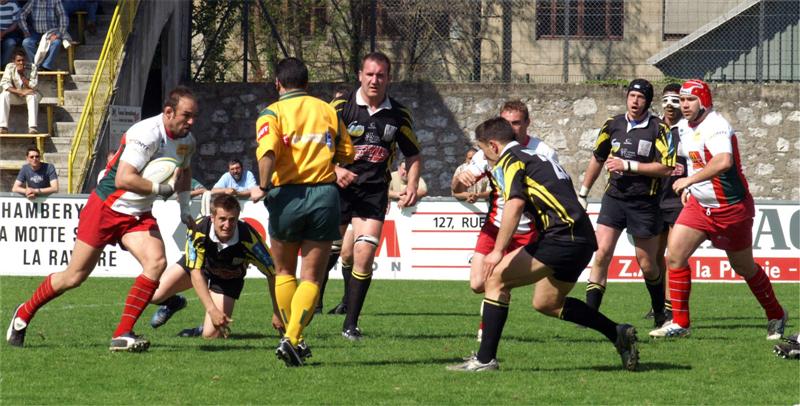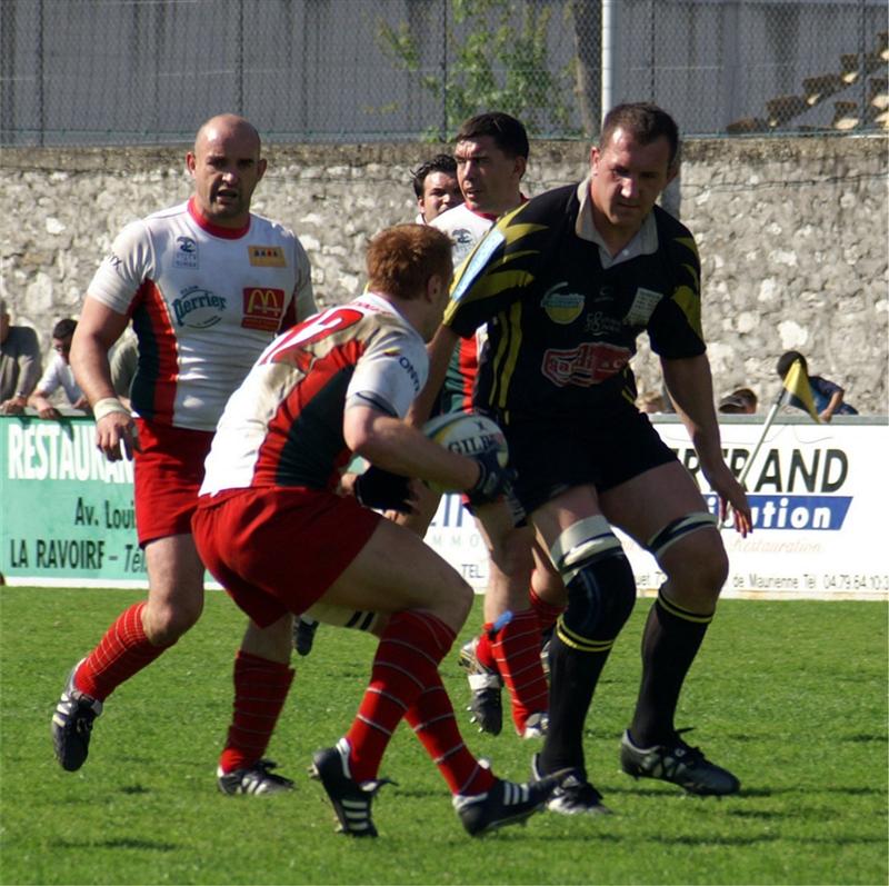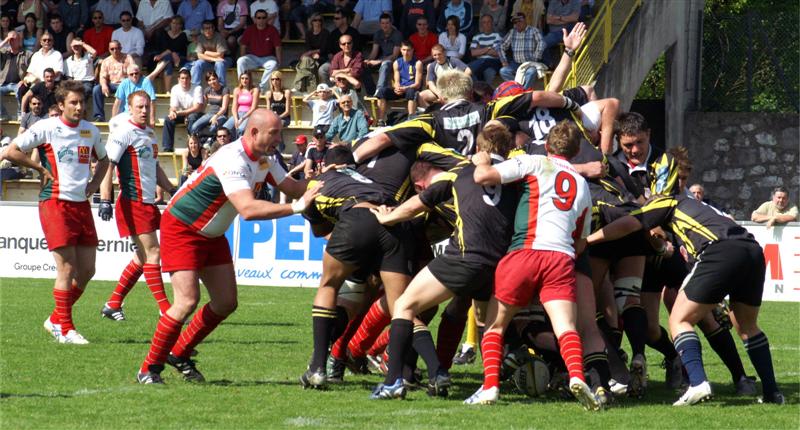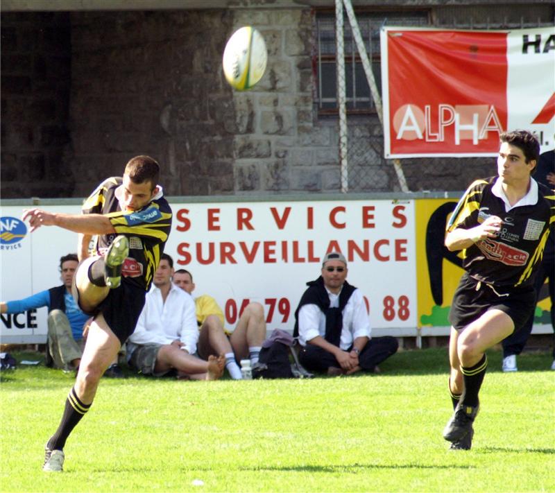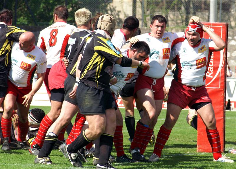 Beau combat d' avants avec un essai "champagne"de Pierre TACCHELLA, un du non moins jeune Laurent DUFRESNE et un de pénalité.