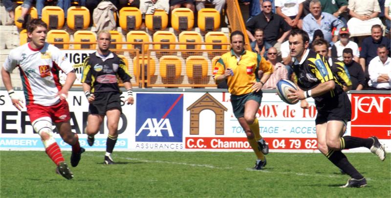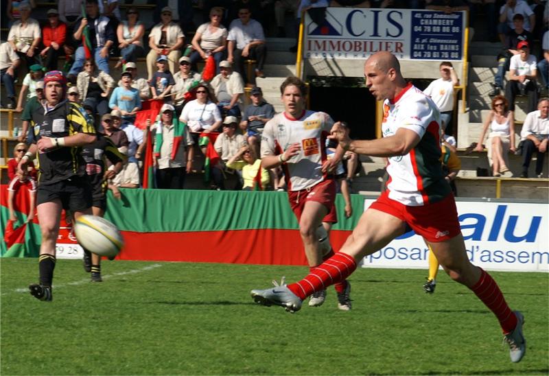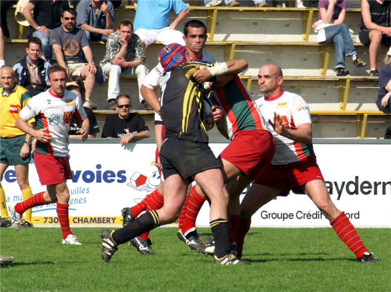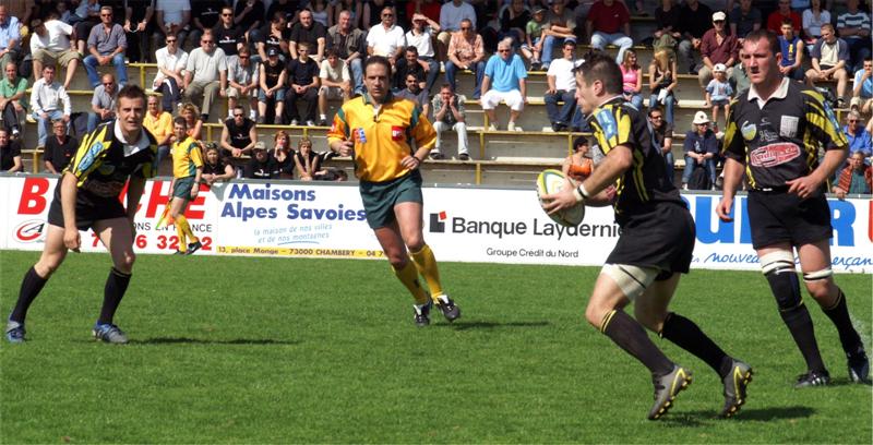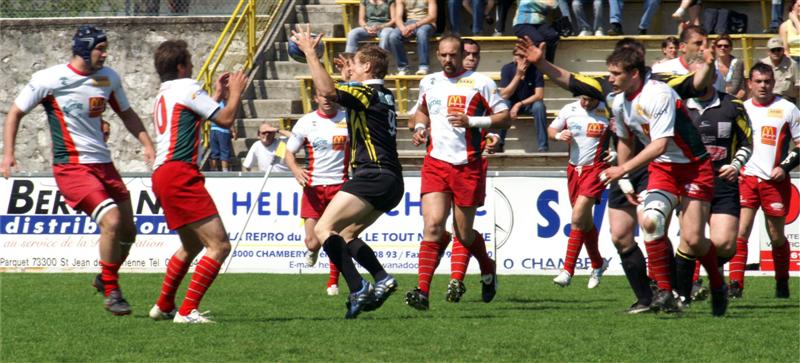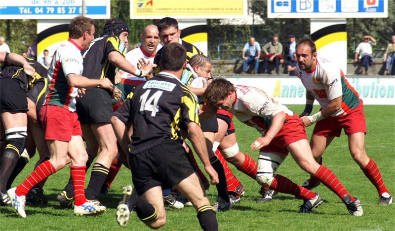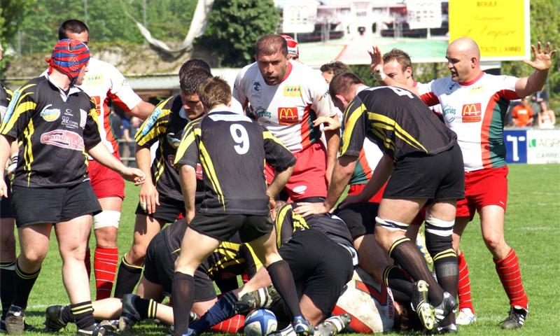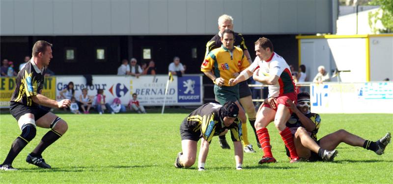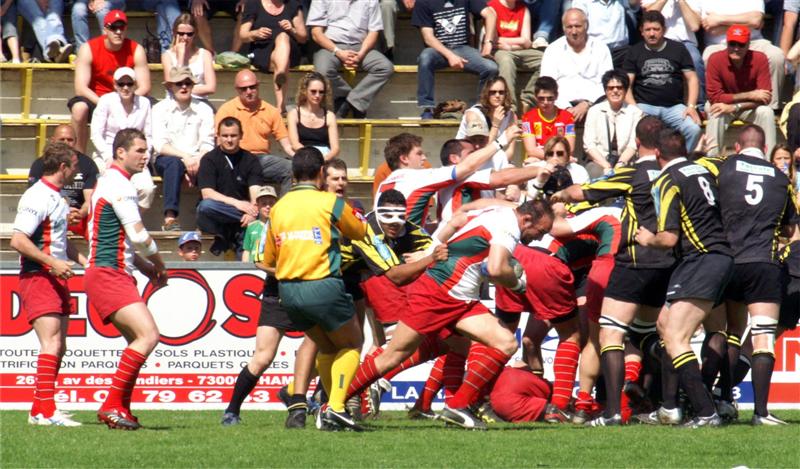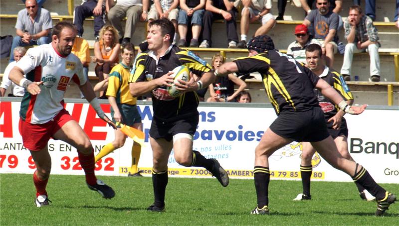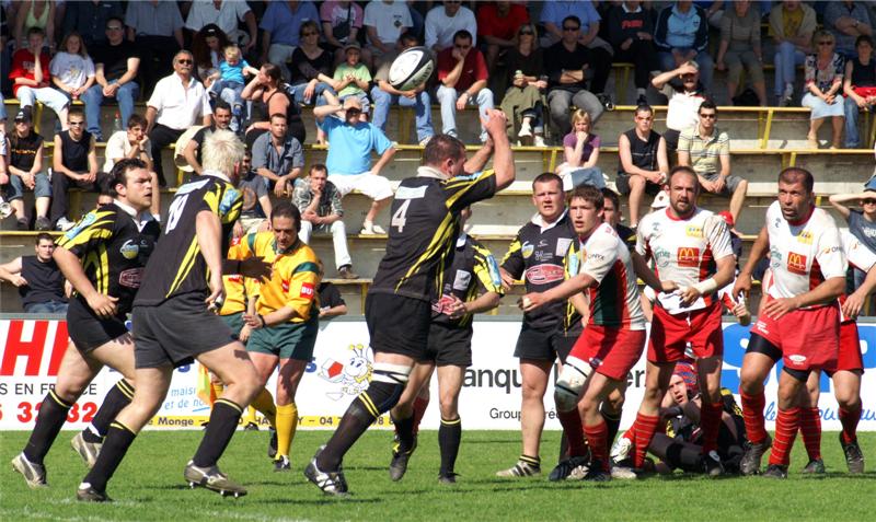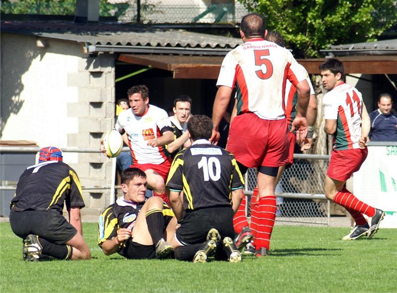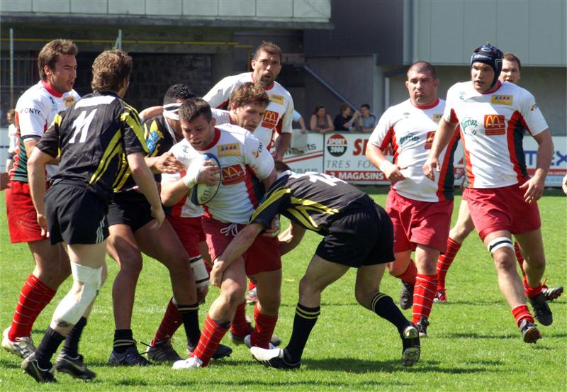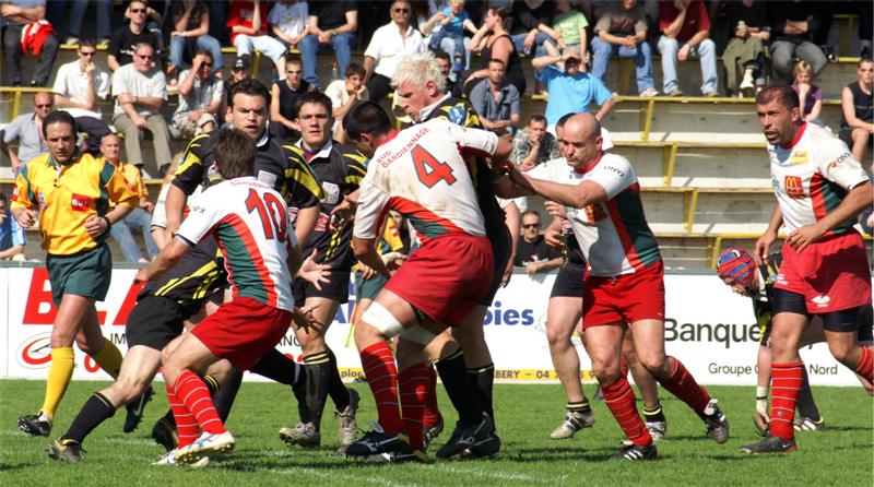 Beau combat d' avants avec un essai "champagne"de Pierre TACCHELLA, un du non moins jeune Laurent DUFRESNE et un de pénalité.