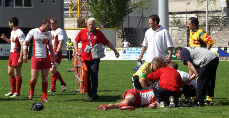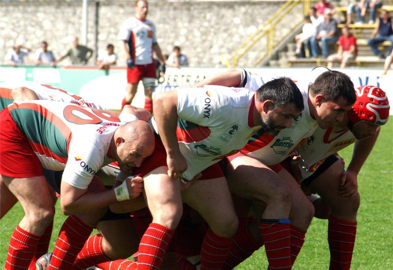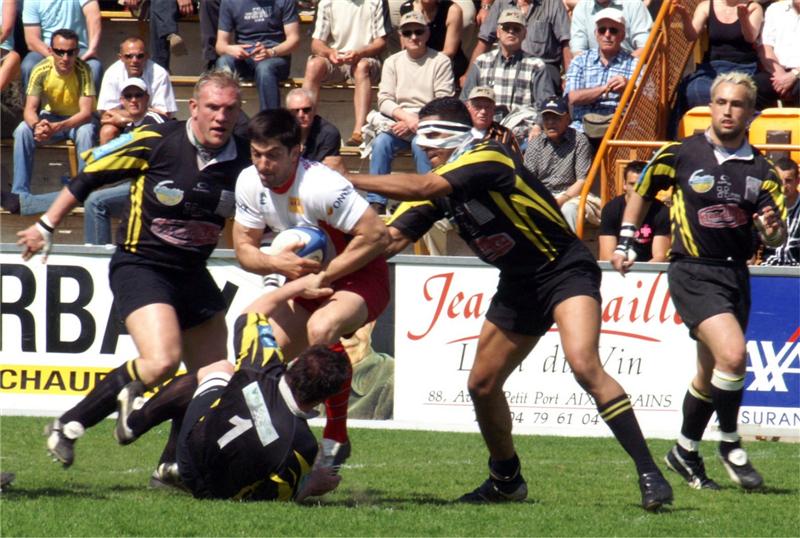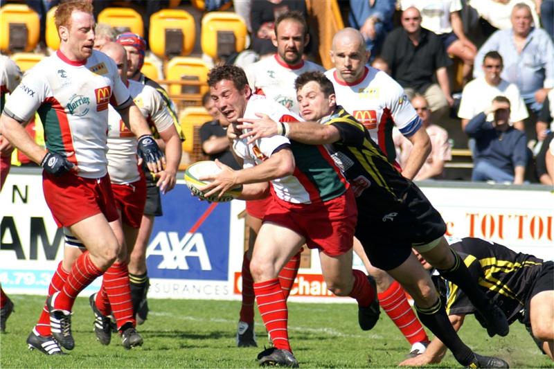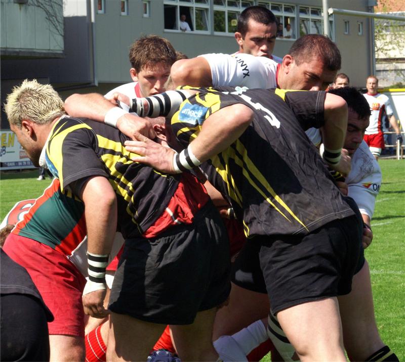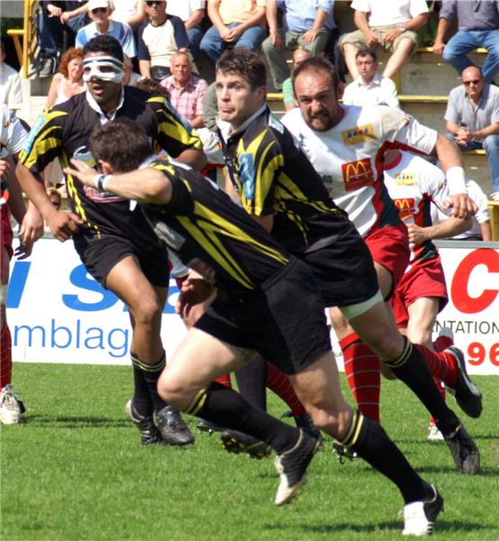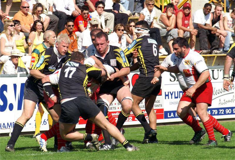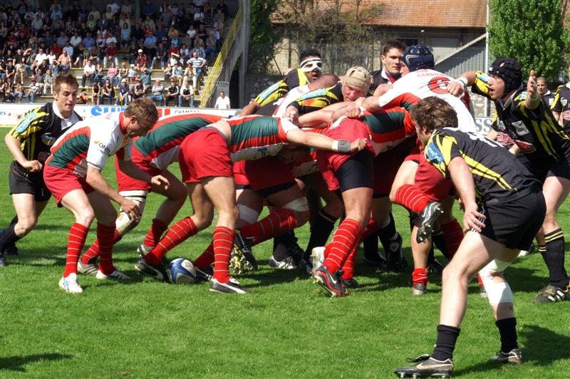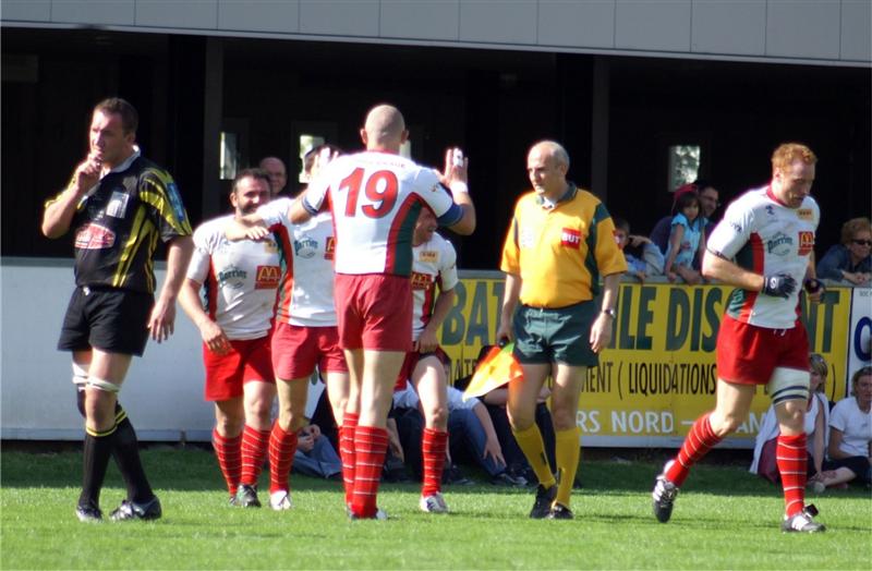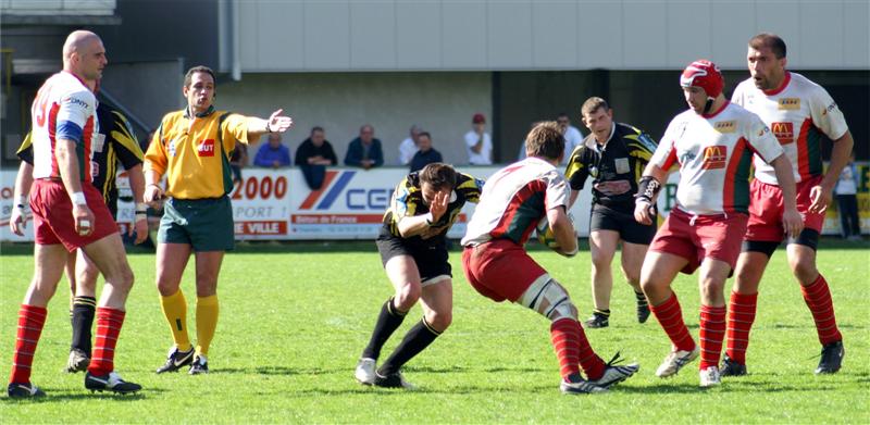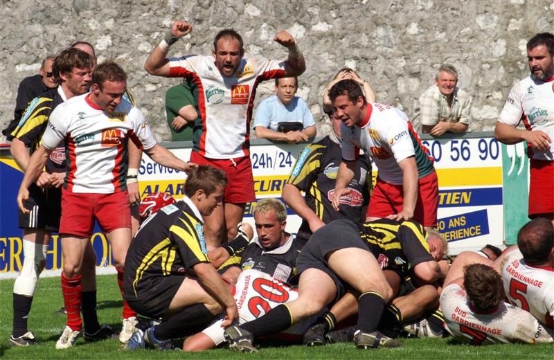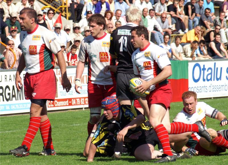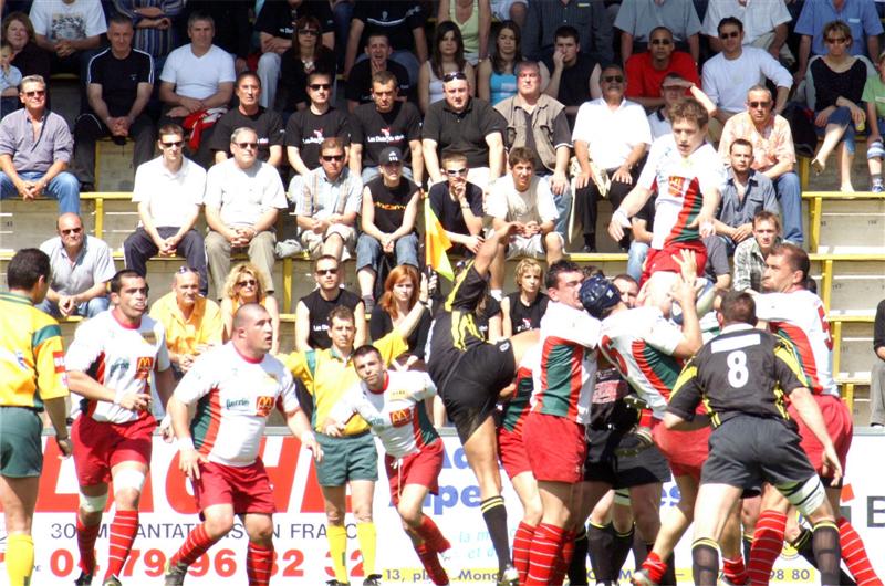 Beau combat d' avants avec un essai "champagne"de Pierre TACCHELLA, un du non moins jeune Laurent DUFRESNE et un de pénalité.