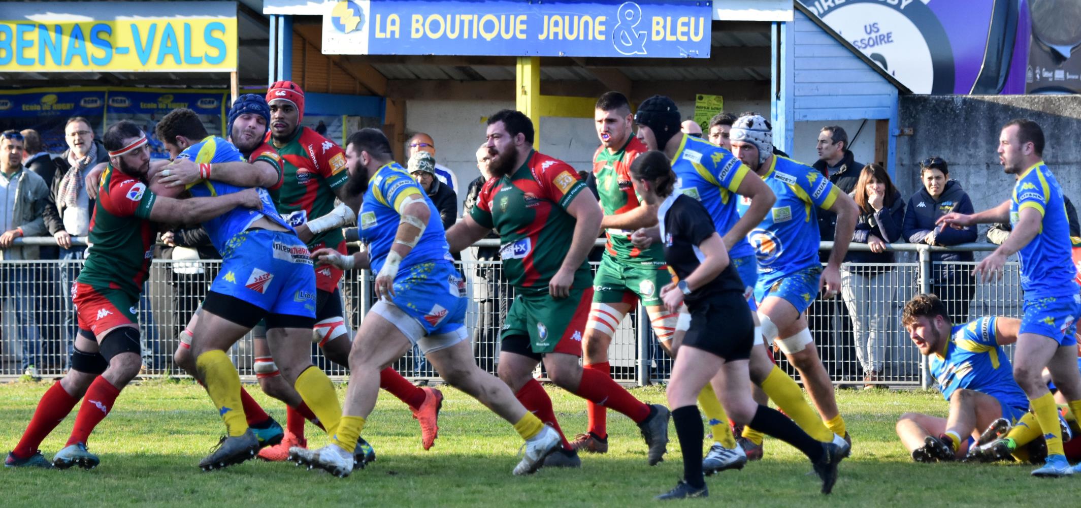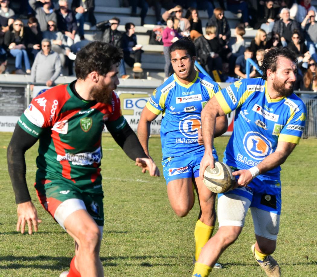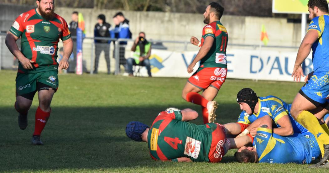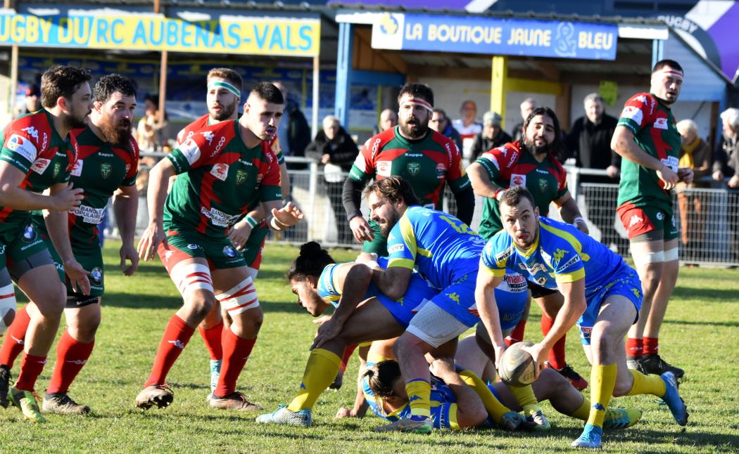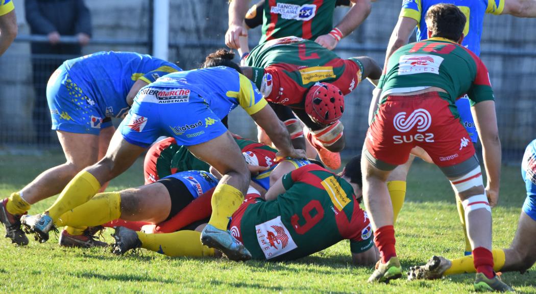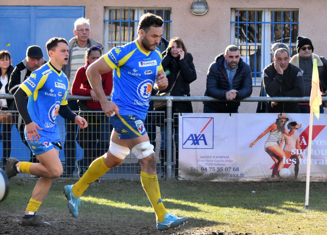 Cela donne alors envie au RCN qui menace la ligne locale alors qu' Aubenas ne répond que par des pénalites, 6 à 3 à la 34ème minute, ça reste jouable mais un essai à la 40ème après une superbe relance de l' arrière local vient casser les espoirs des Verts, 13 à 3 à la mi-temps.