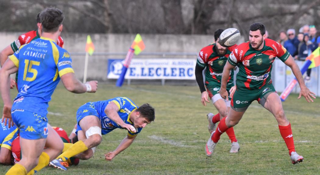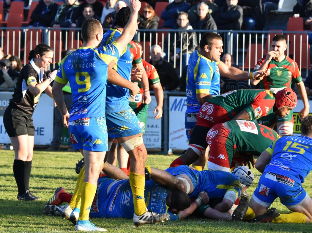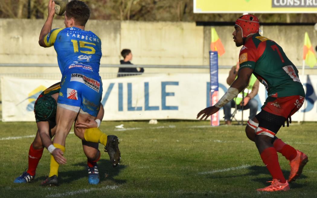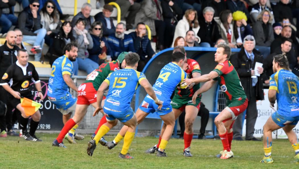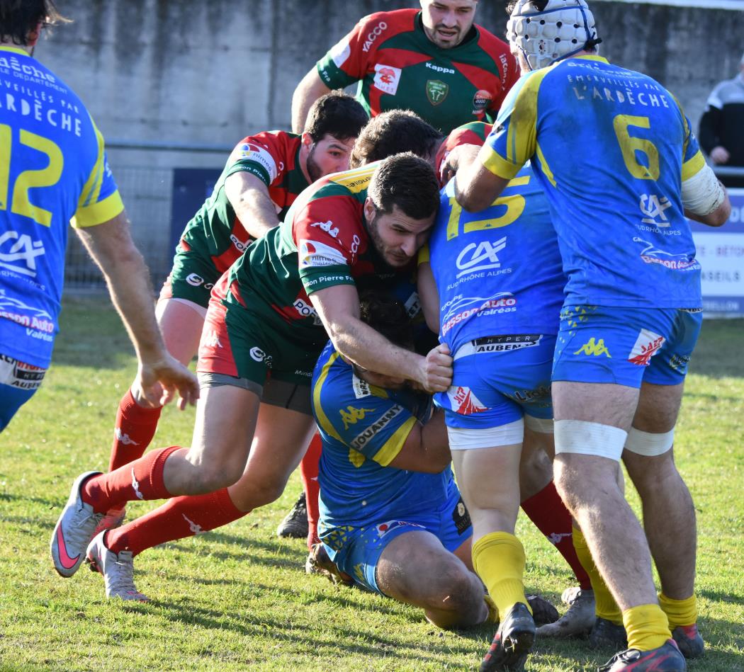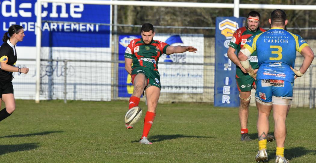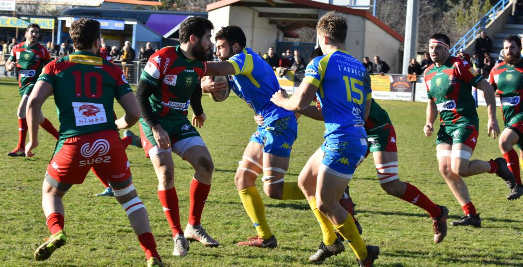 D'entrée les Ardéchois prennent le match en main, s'installent dans les 40 mètres nîmois, se créent des occasions mais se cassent les dents sur une défense bien en place et c'est un peu contre le cours du jeu que Nîmes va mener à la 23ème minute (0-3) après une pénalité réussie par Bastien Vilaret qui marque ainsi son retour à l'ouverture.