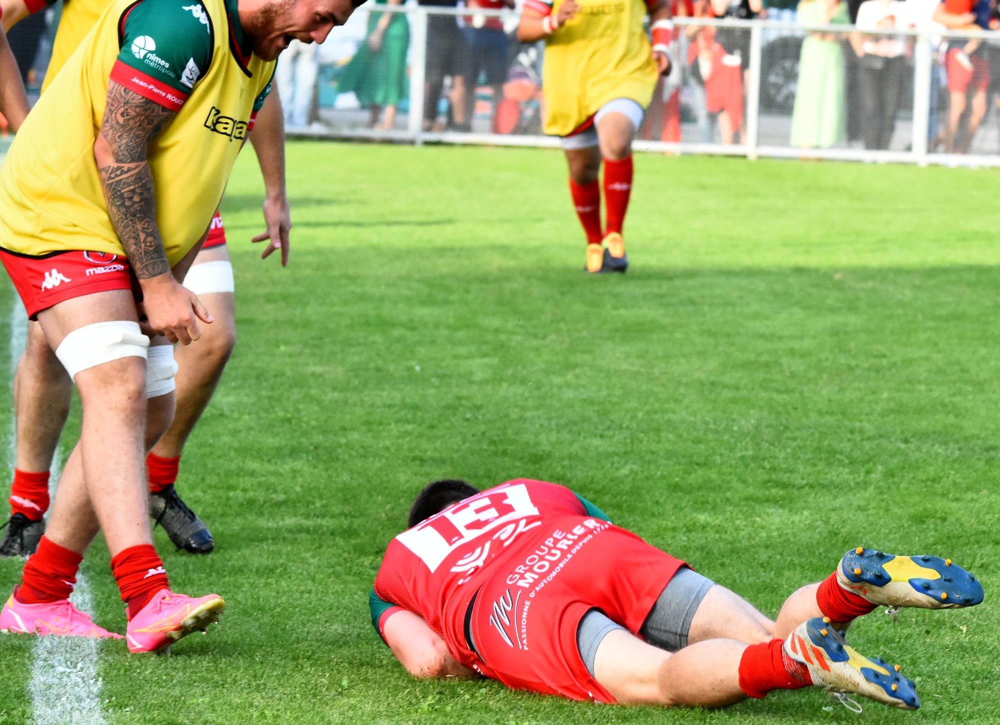 Le temps que les remplaçants se mettent dans le bain, Rumilly réagit par deux essais, 29 à 15 à l'heure de jeu et ça repart de plus belle pour les Nîmois, feu d'artifice de Charles Robbe avec deux essais, Samuel Roche toujours entre les perches et c'est un score auquel personne ne pouvait s'attendre .