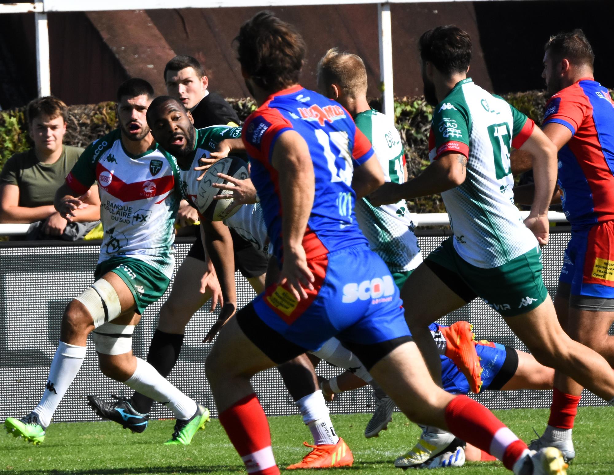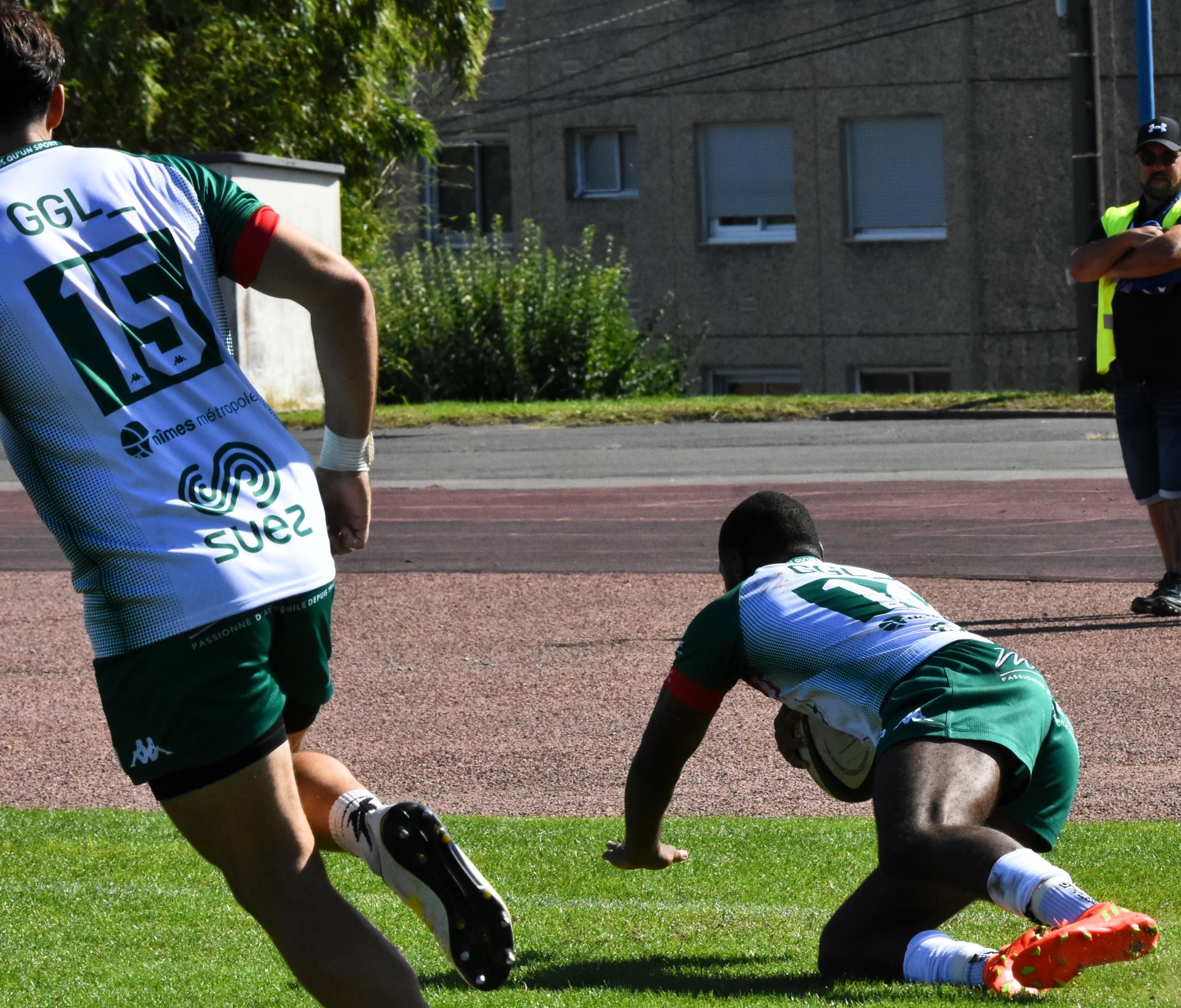Les Nîmois vont petit à petit reprendre les affaires en main et à la 20ème minute Junior Ngandu applatit le premier essai nîmois, 6 à 10.