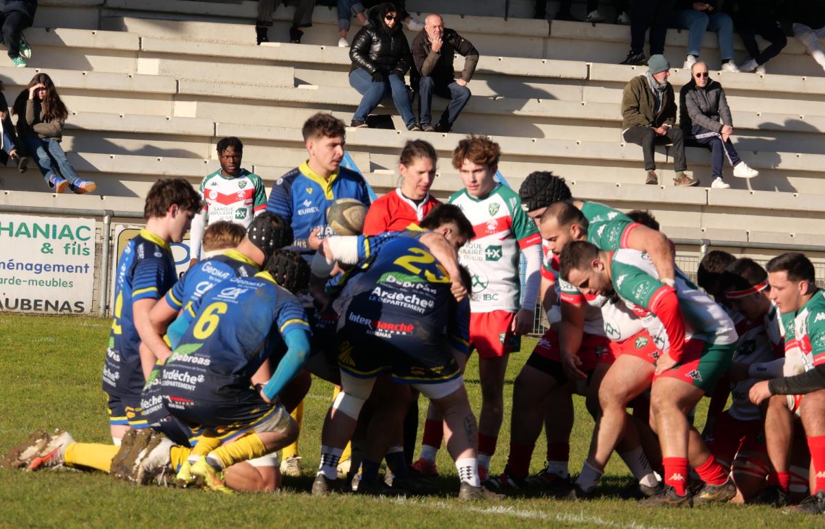 Une pénalité, un essai de l'ancien Nîmois Maisuradze et les Ardèchois réduisaient leur retard, 10 à 19 à la mi-temps mais les visiteurs ne faiblissent pas.