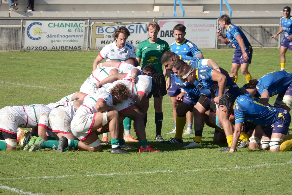 Une pénalité de Sabbia, un essai de Villerouge après percée de Tupuola, 9 à 10 à la 20ème minute, les Ardéchois baissent de rythme.