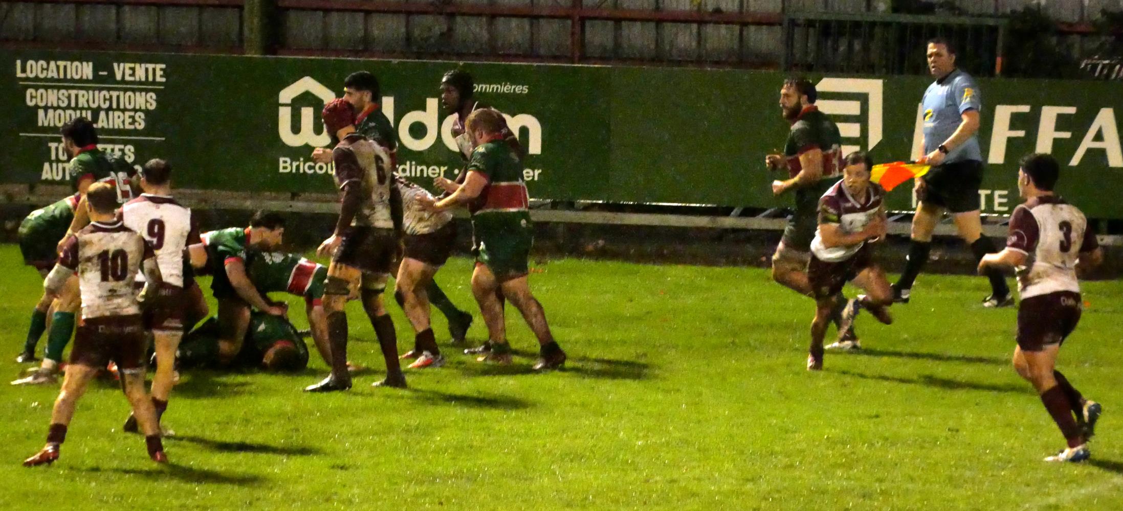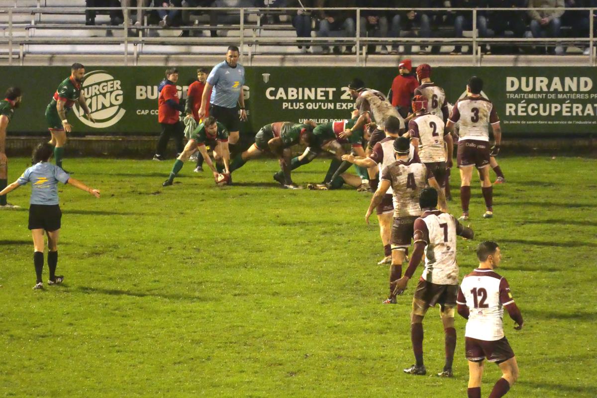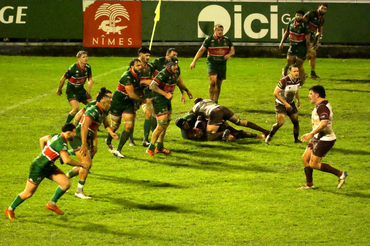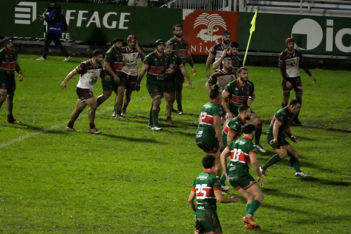 Mais lors des changements Nîmes fait rentrer ses "gros", la mêlée grenat est à la peine et un essai de Pichard à la 48ème minute permet aux Nîmois de prendre l'avantage pour la première fois, 14 à 13.