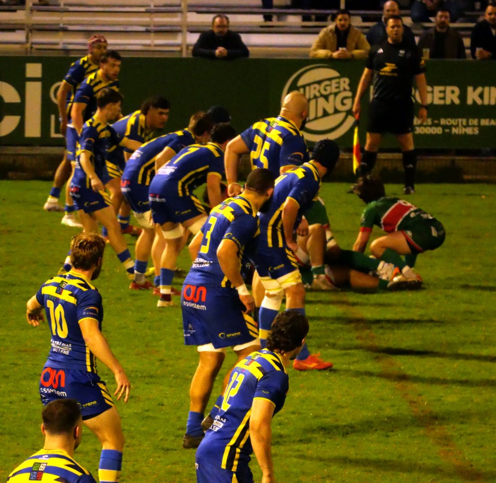 Les avants nîmois enchaînaient et Thomas Coignat marquait juste avant la mi-temps pour porter le score à 20 à 6.