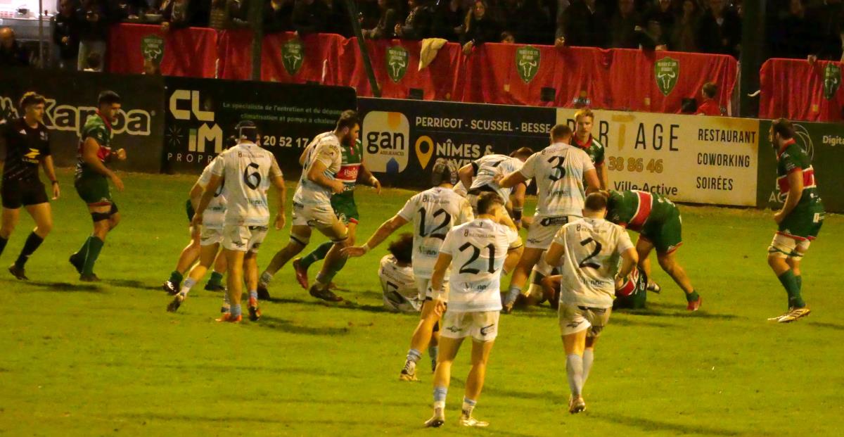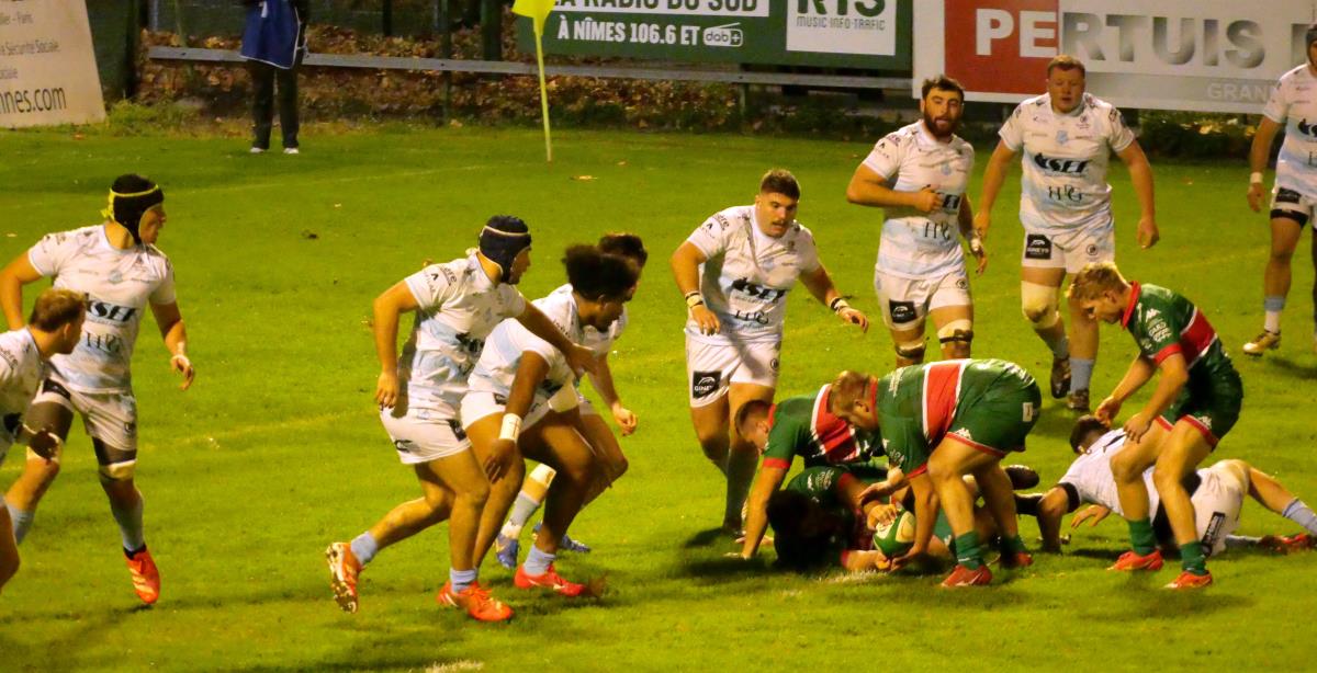 Mais à la 73ème minute une attaque de 50 m troue complètement la défense nîmoise sans ressort : 22 à 35 , un essai de belle facture qui va clôre le débat.