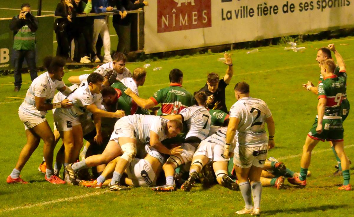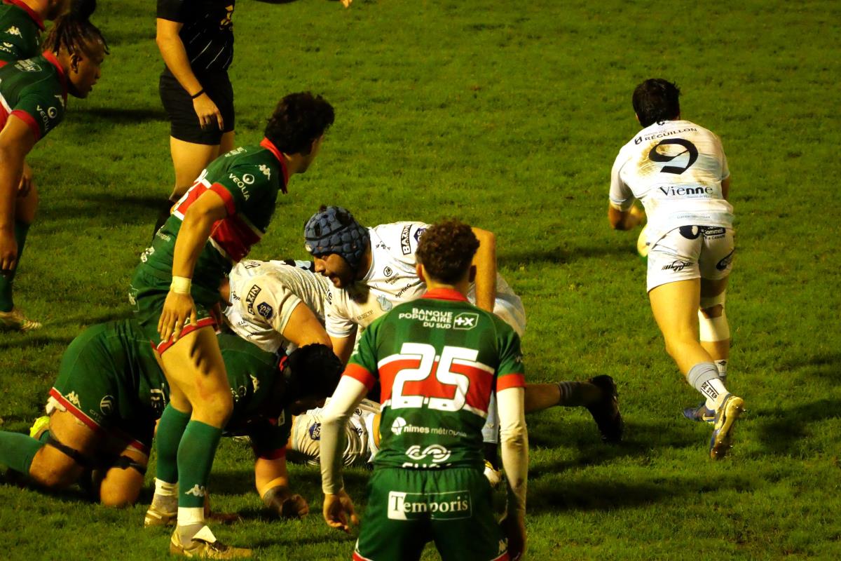 En seconde mi-temps les Nîmois déstabilisés vont donner les clefs du match à Vienne qui va enchaîner les mauls, une spécialité iséroise, 22 à 25 à l'heure de jeu, les Viennois sont chez eux.