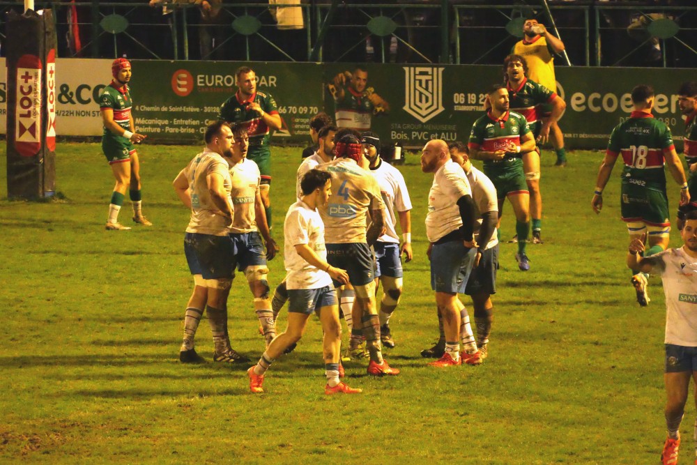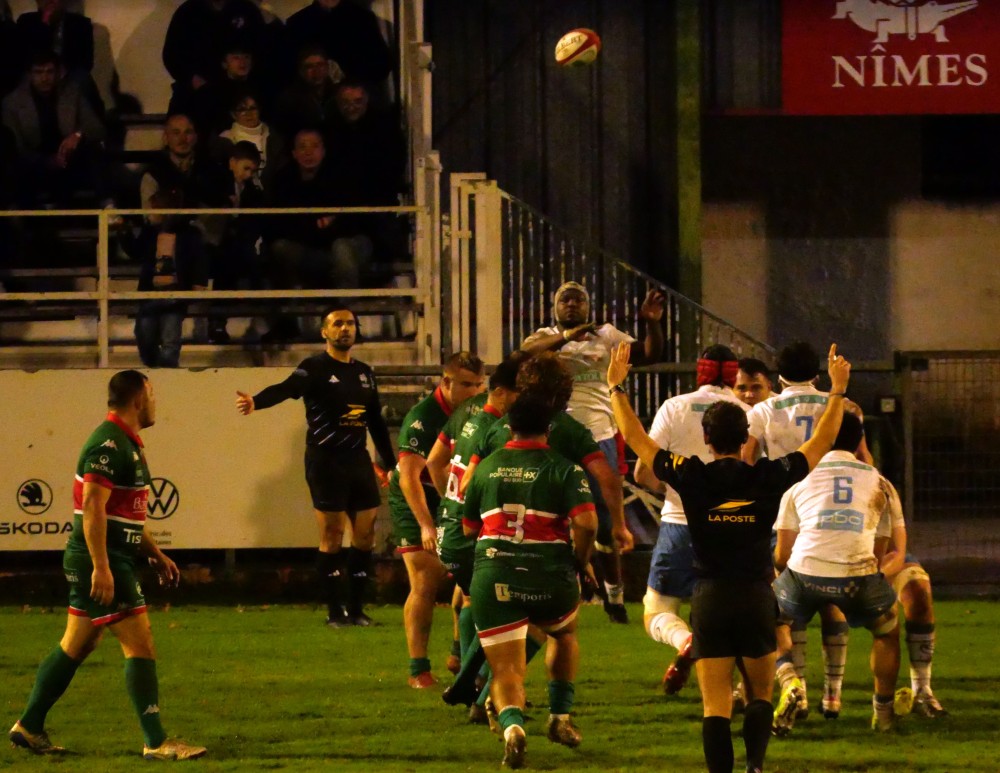 des Nîmois devant leur ligne, 20 à 14 , ça sent le roussi.